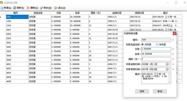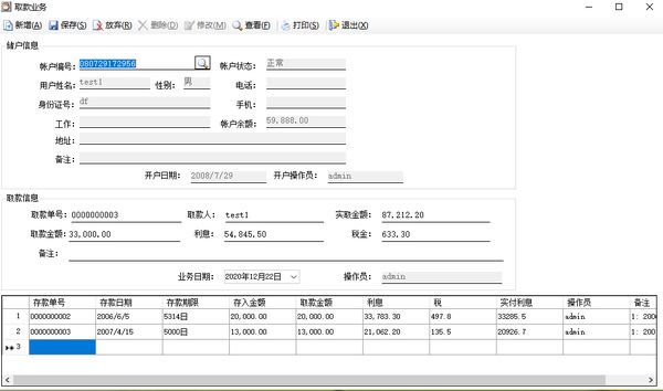產(chǎn)品概述:此系統(tǒng)主要用于實(shí)現(xiàn)企業(yè)內(nèi)部建立銀行,以方便融資,吸納企業(yè)員工或社會人士資金注入。軟件實(shí)現(xiàn)了日常的存款、取款、利息結(jié)算及相關(guān)報(bào)告,尤其對處理企業(yè)不同時(shí)期不同利率、分階段生成利息、復(fù)雜的利息計(jì)算有很好的解決方案。