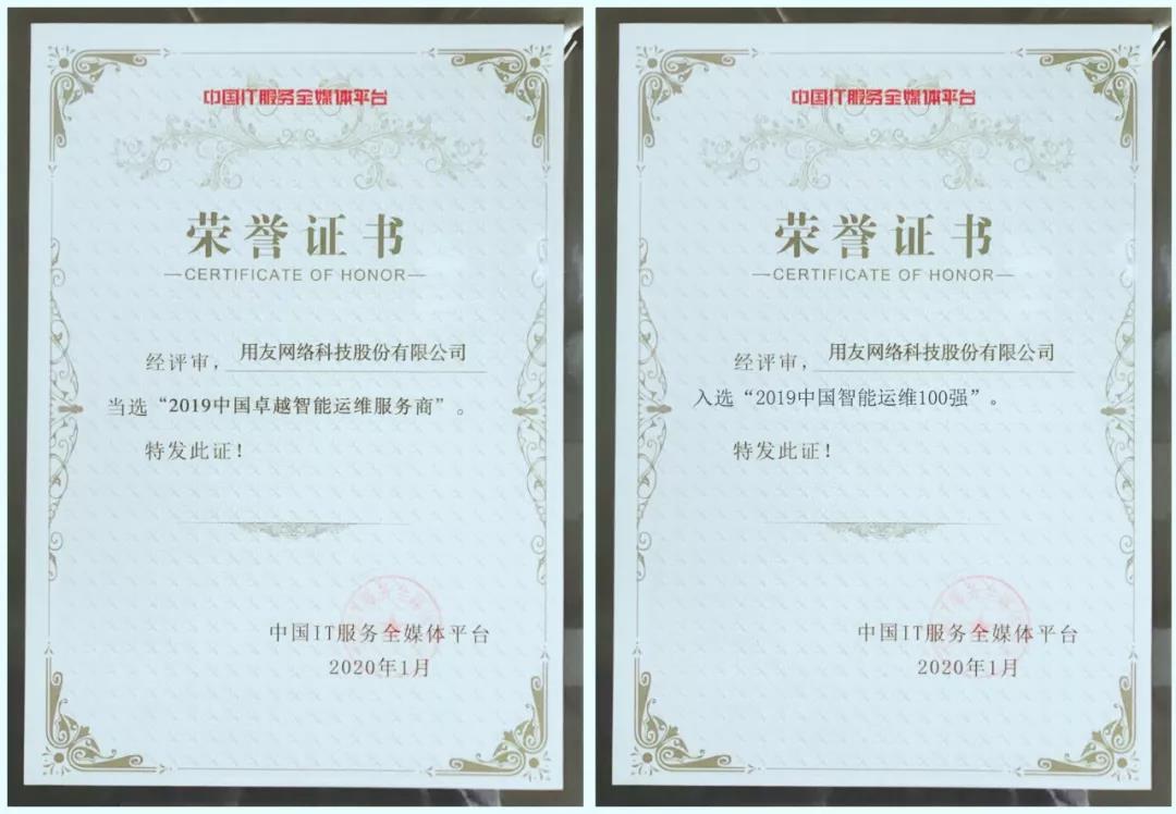 【榮譽(yù)】用友喜獲 2019中國(guó)IT服務(wù)領(lǐng)軍企業(yè)和智能運(yùn)維服務(wù)商兩項(xiàng)大獎(jiǎng)